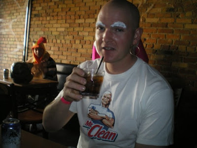 | I love going on pub crawl's at Halloween just to see all the different costumes. In 2008 we went on one and there were some great costumes! One of our good friend's Geordo did a great Mr. Clean! |
